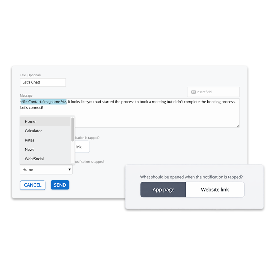 Personalize your messages with dynamic fields pulled from each lead or client, so every push notification feels tailored, even when a push notification is sent to multiple recipients.